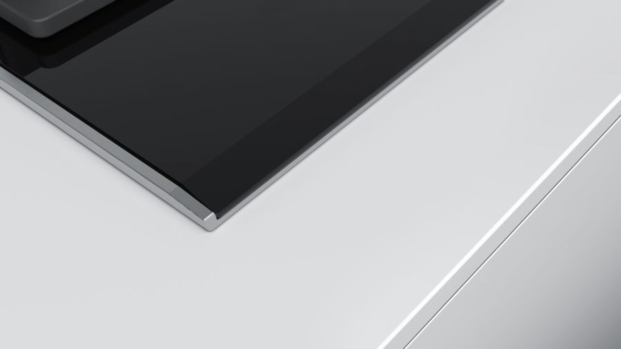 Cạnh trước của bếp vát viền tinh tế, ôm trọn mặt tủ bếp âm tạo nên sự gọn gàng, vừa vặn. 2 cạnh bên được bo viền kim loại ( thép không gỉ) mang đến cảm giác chắc chắn.